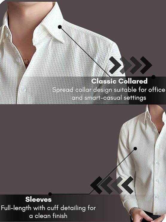 GRECIILOOKS Men's Formal Button Down Shirt – Slim Fit Shirt's for Men | Textured Long Sleeve Polycotton| Business & Meeting Ready (Available in Plus Size and Combo Pack of 2)