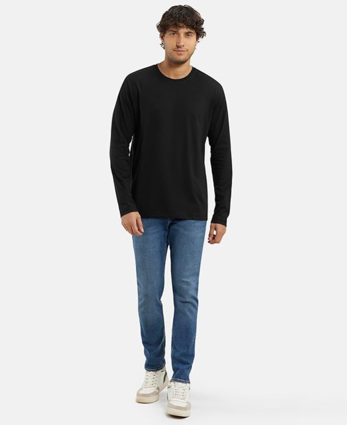 Jockey Men's Regular Fit Round Neck Full Sleeved T-Shirt AM95_Black_XL
