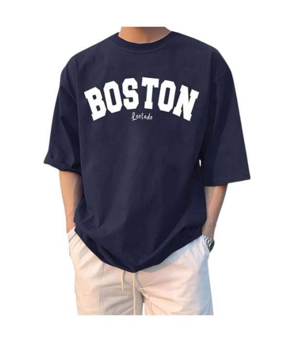 LEOTUDE Man Cotton Blend Graphic Print Round Neck Half Sleeve Drop Shoulder Oversized T Shirt (Color Navy Blue)